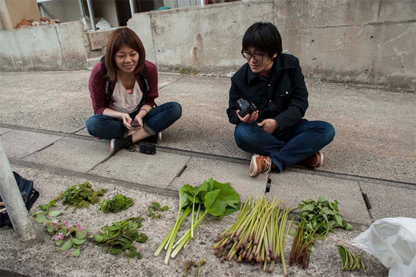 5月23日には、アーカイブ研究の逢坂裕紀子さんとアーティストの下野友嗣さんが下見調査に来ました。地元で採れる山野草などを食したり、説明を受けました。夜には福島在住アーティストの鉾井さんも合流し、設営について夜遅くまで討議が交わされました。